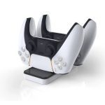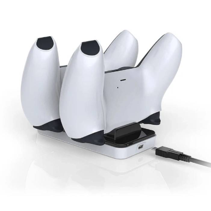 پایه شارژر مدل TP5-0504 ساخته شده توسط شرکت Dobe برای دسته DualSense به شما این امکان رو میدهد تا دو دسته پلی استیشن 5 را به صورت همزمان شارژ کنید. این شارژر کنترلرهای شما را با پورت Type-C شارژ میکنند.