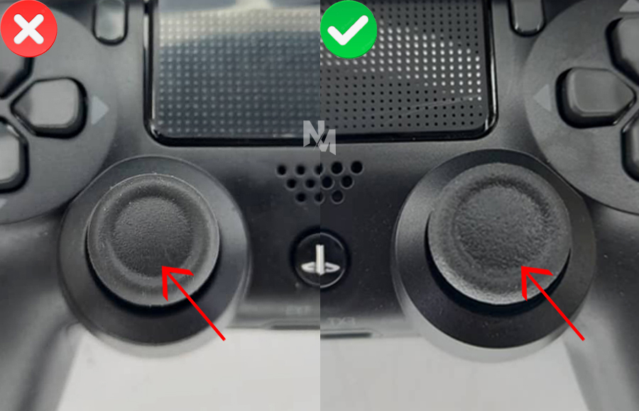 یکی از خصوصیات دسته PS4 اورجینال این است که انگشت دست ها از روی آنالوگ لیز نخورد و این یکی از سیاست‌های سونی در طراحی دسته های دوال شاک به شمار می‌رود. اما در دسته‌ فیک Ps4 جنس آنها فرق می کند و جنس آن نزدیک به پلاستیک است.