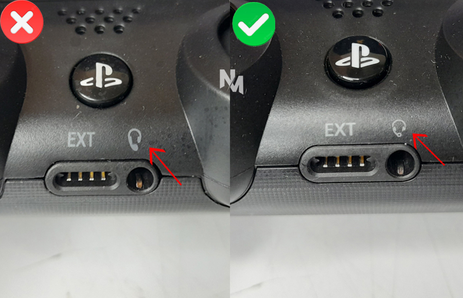در مرحله ی دوم که دو کلمه EXT و علامت هدفون درج می‌شود را ببینید، اگر خوب دقت کنید می بینید که دسته PS4 اصلی علامت هایش پررنگ تر است اما در دسته PS4 های کپی کمرنگ تر هستند.